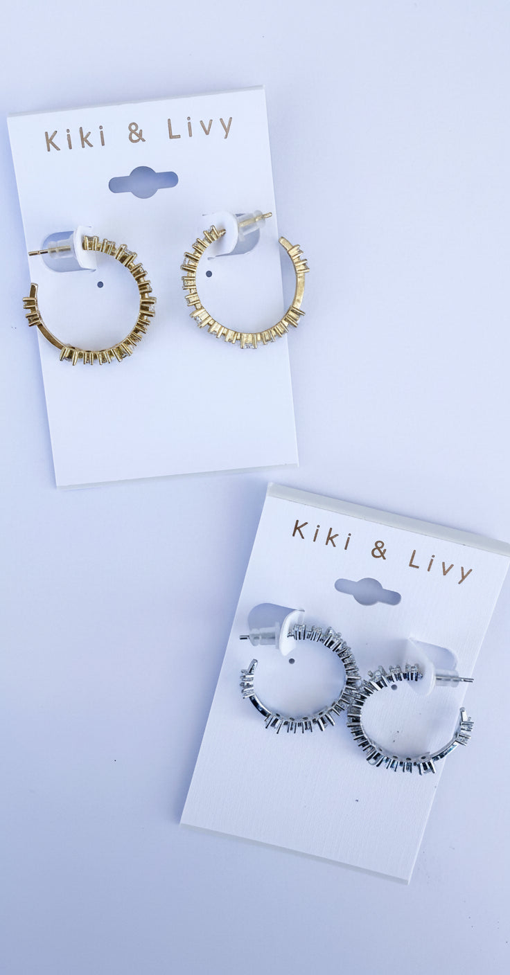 Add some sparkle to your ear game with our Bling Hoops. These earrings feature a unique stone design that adds an edgy touch to any outfit. Perfect for those who want to add a little sass to their accessory collection.