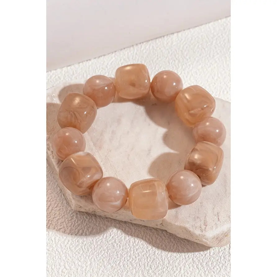 Color-Block Cube & Circle Mix Acrylic Stretch Cord Bracelet. Featuring a playful mix of bold shapes and vibrant colors, this bracelet combines cube and circle acrylic beads for a modern, artistic vibe. The stretch cord design ensures a comfy fit....