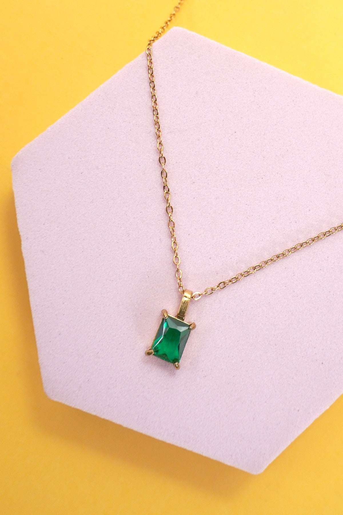 18K Stainless Steel Tarnish-Free Glass Stone Necklace, a sophisticated and timeless piece featuring a dazzling glass stone pendant on a high-quality 18K stainless steel chain. Designed to resist tarnishing and maintain its brilliance, Product Details: length: 16" Charm size: ext:...