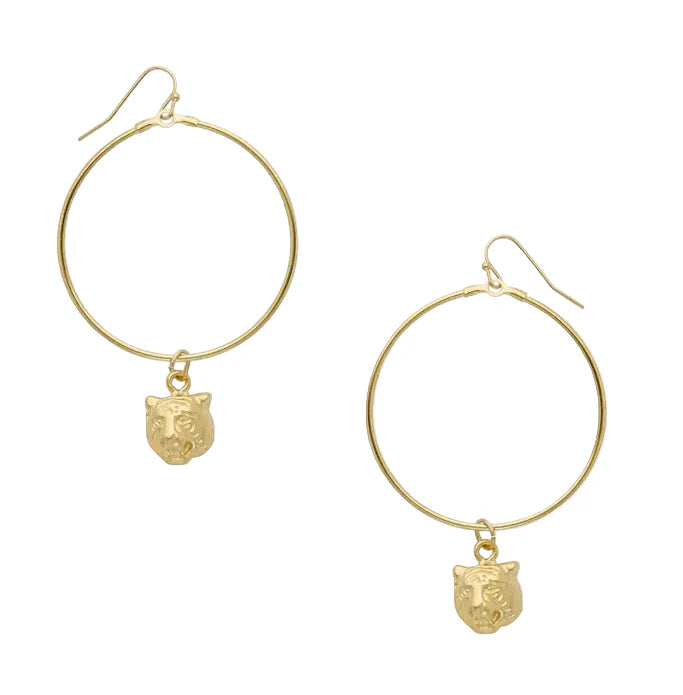 From Susan Shaw's unique collection, immerse yourself in the exquisite design of the Gold Tiger Head Hoops. These hoop earrings feature an elegant handcast 24Kt Gold Tiger Head, reflecting the brand's commitment to high-quality plating methods. Each piece, crafted by...