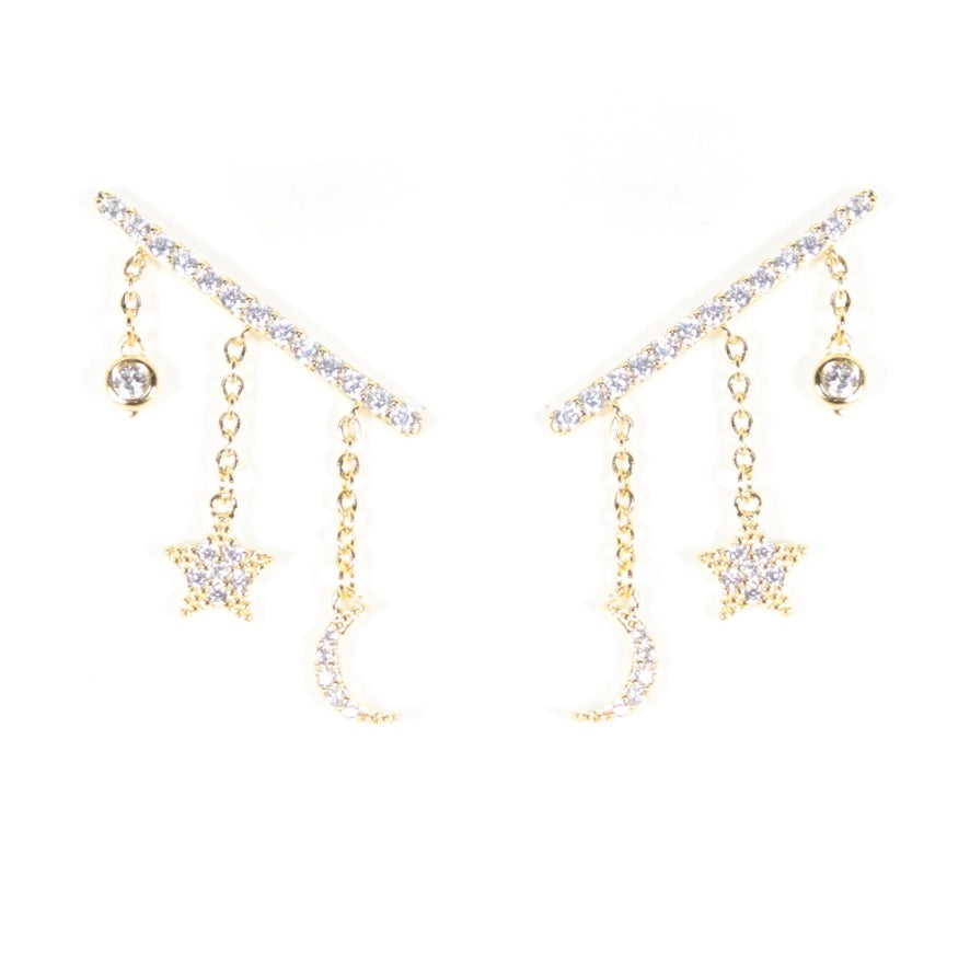Reach for the stars and the moon with these beautiful Star and Moon Climber earrings! Featuring a stunning CZ Ear Climber design, these earrings feature a hanging star and moon charm that is sure to sparkle and shine in any...