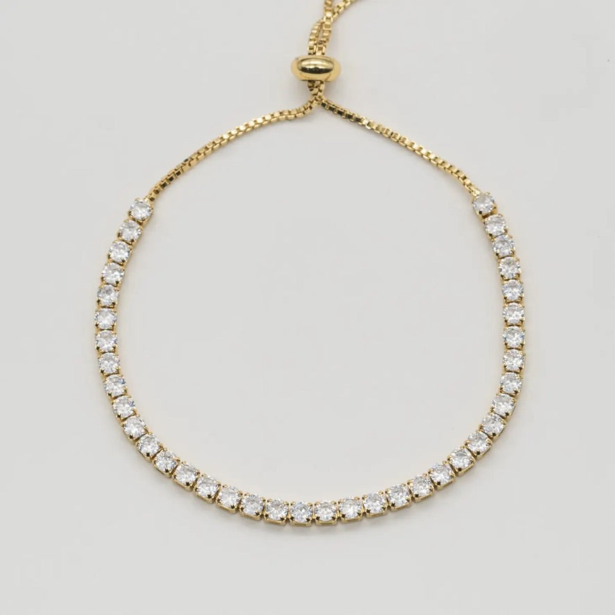 Water resistant💧 Brass 18K gold Hypoallergenic Nickel free Size: adjustable - one size fits all Designer note Nothing quite captures delicate beauty more than a sparkly tennis bracelet. Detailed and adjustable, this bracelet is perfect for your fall bracelet stack....