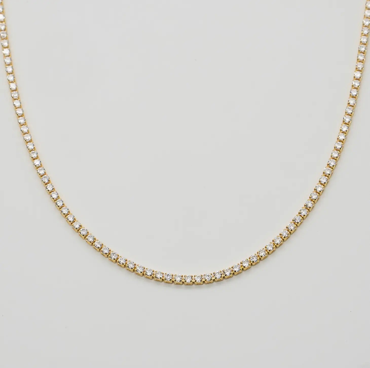 Water resistant💧 Brass 18K gold and 2mm cubic zirconia crystals Gold filled chain Hypoallergenic Nickel free Size:14"+ 3"extender, closure: lobster clasp Designer note: the holidays call for some extra sparkle! The new tennis choker is inspired by your radiance and...