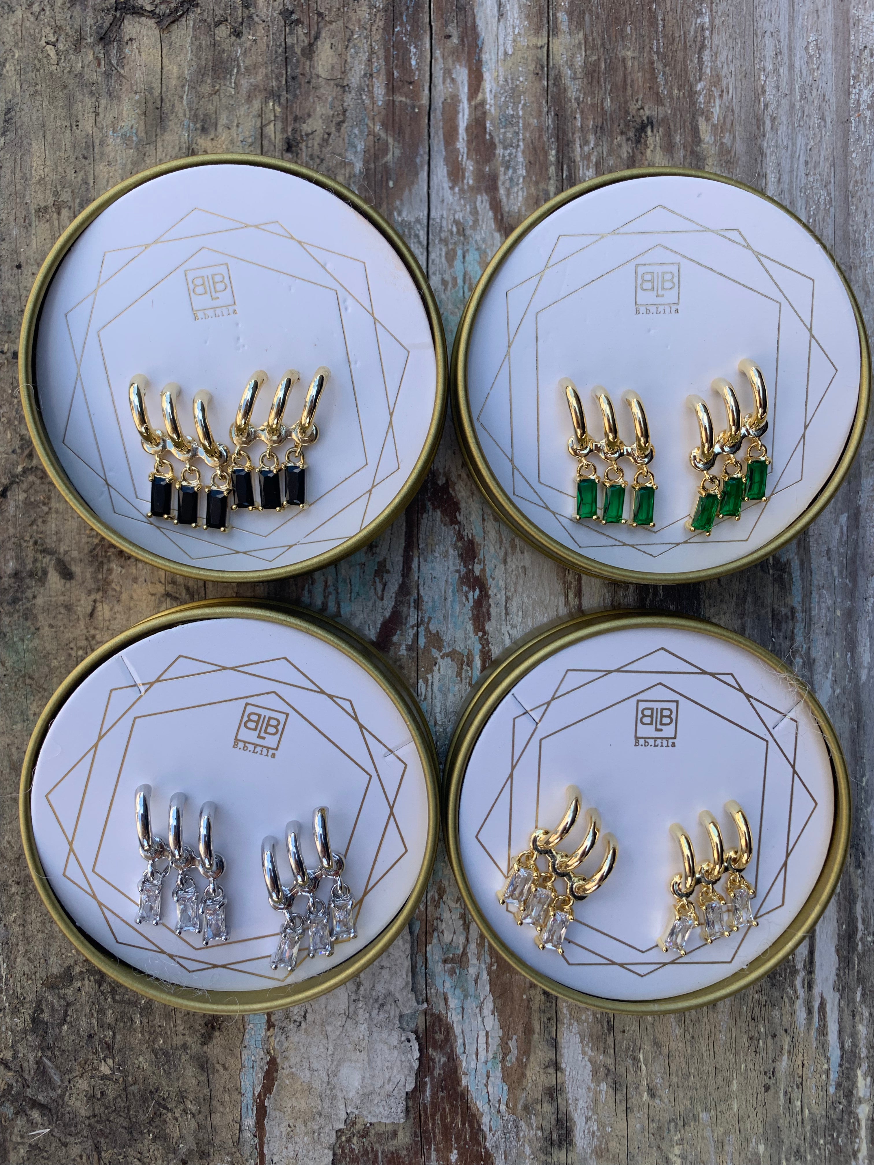 Colors: Silver Diamond Drop Ear Stud/Climbers, Gold Diamond Drop Ear Stud/Climbers, Gold and Black Stone, or Gold with Emerald Stone