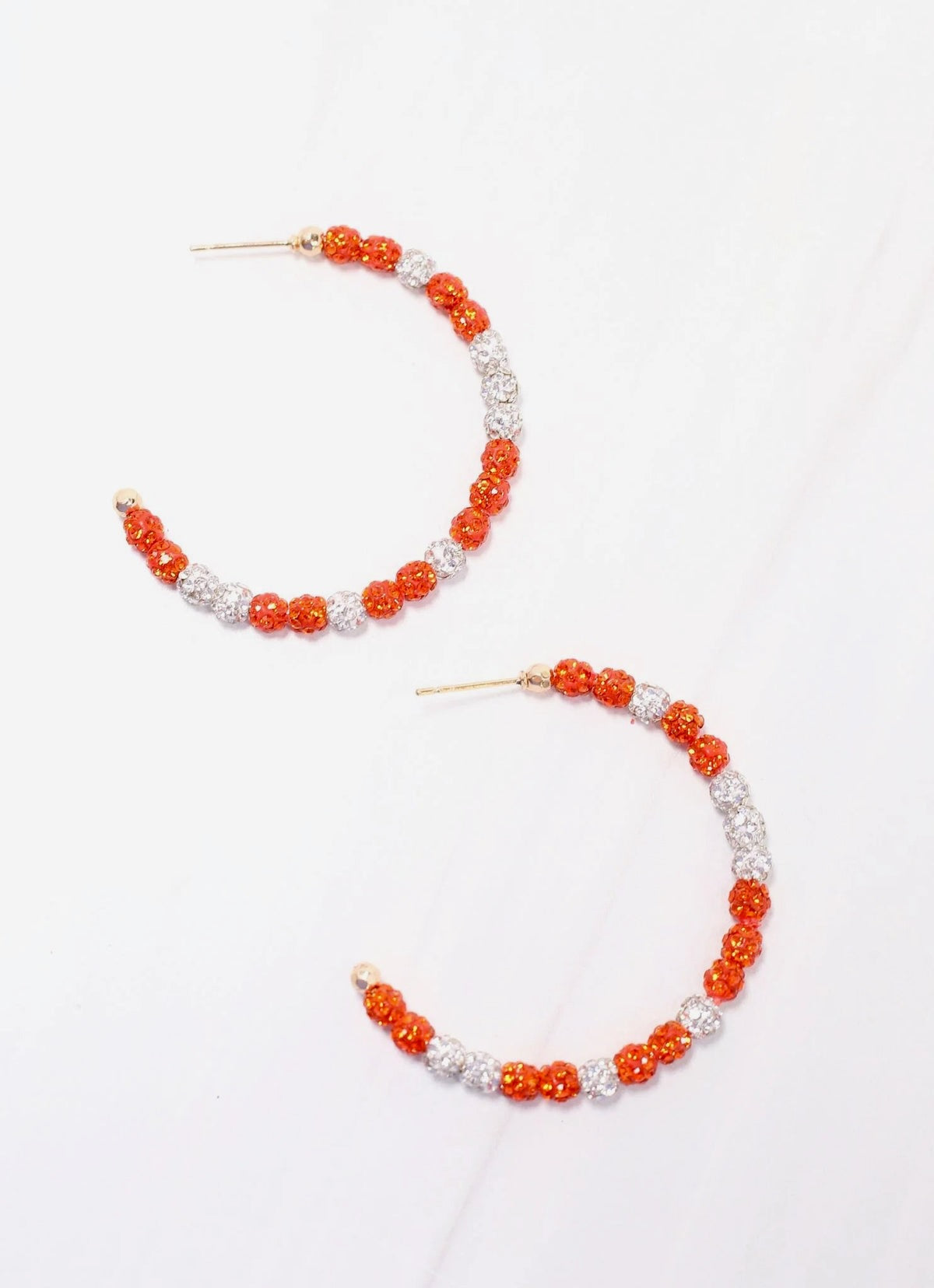 These hoop earrings are lined with colorful CZ bead accents on a post back. These would be great for Game Day!