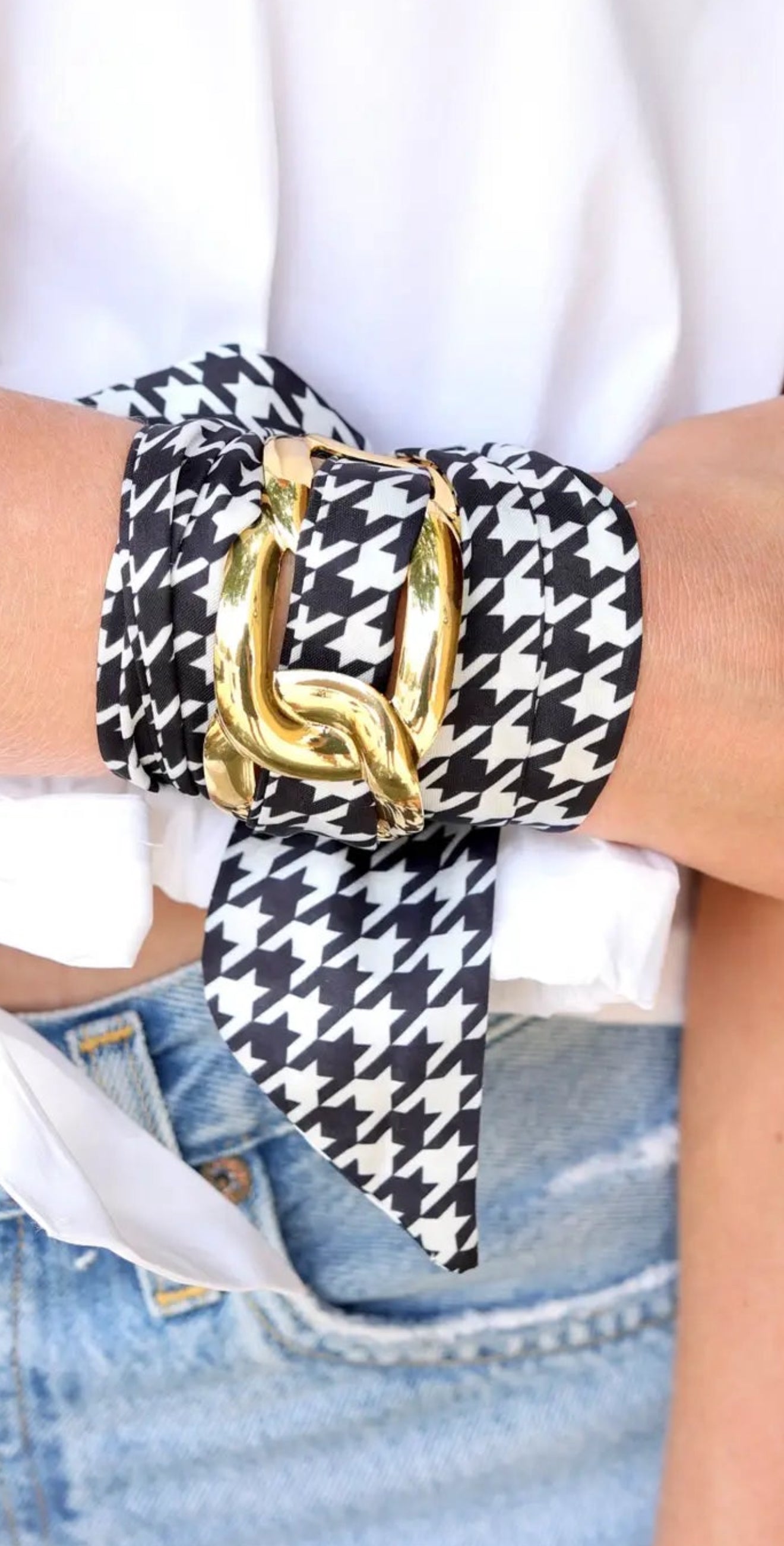 Elevate your game day style with the Serafina Scarf Bracelet. This fashionable accessory features a sleek stainless steel adjustable cuff threaded with a vibrant scarf, making it easy to show off your team colors in a chic and effortless way....