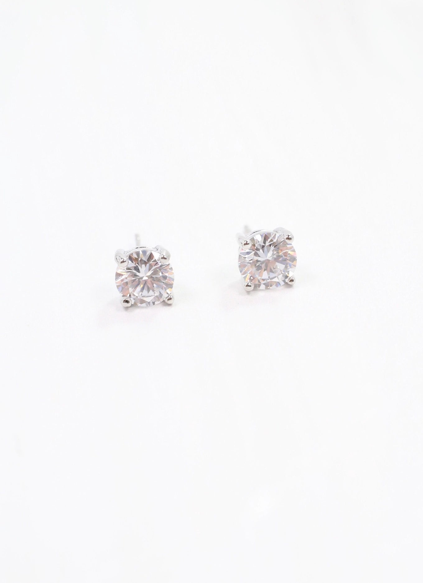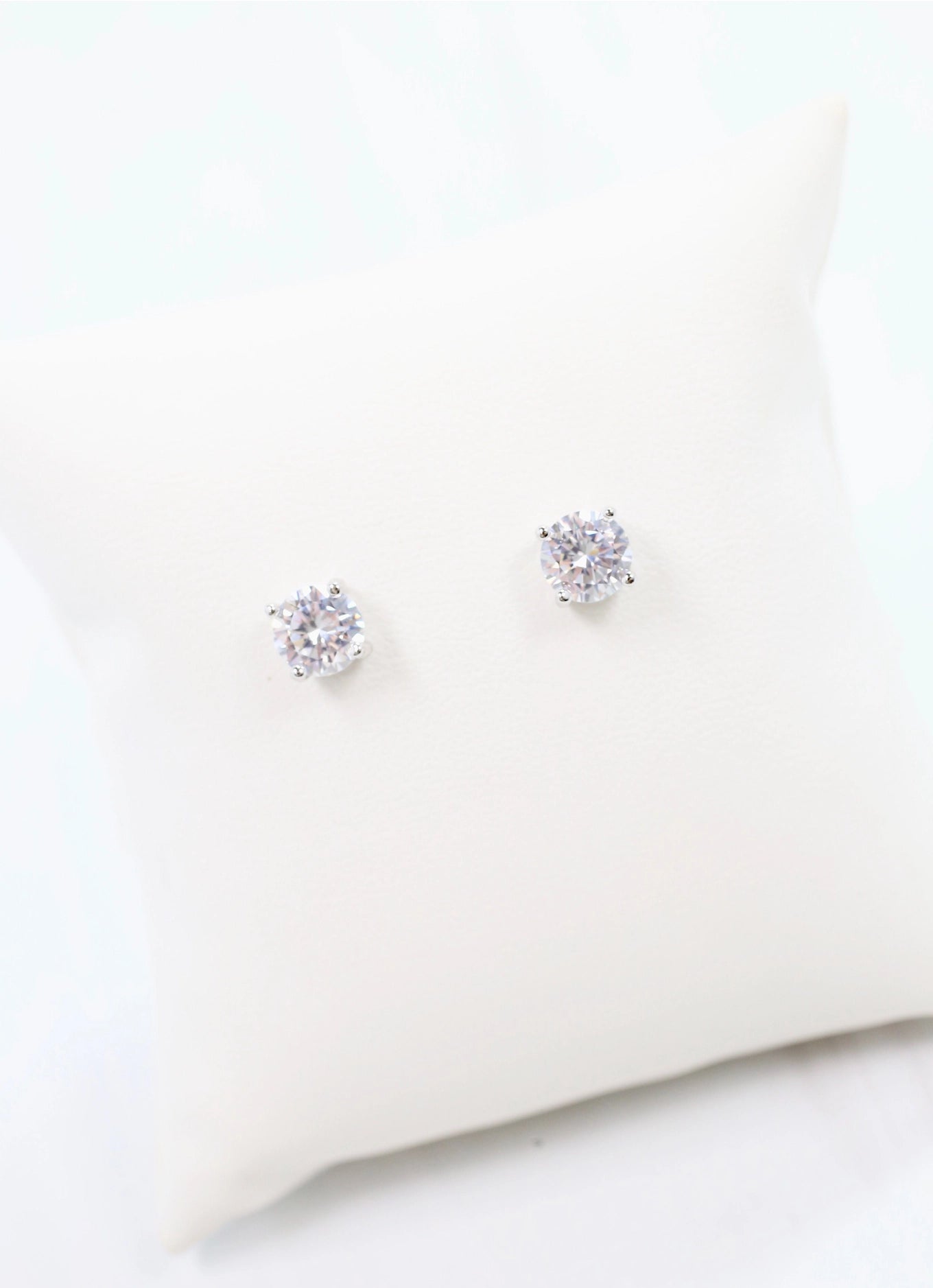 You can never go wrong with a classic sparkly CZ stud earring. It's the perfect everyday accessory to be styled with any outfit. Dimensions: * 0.5" * Brass * Rhodium plated