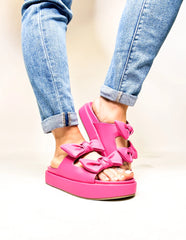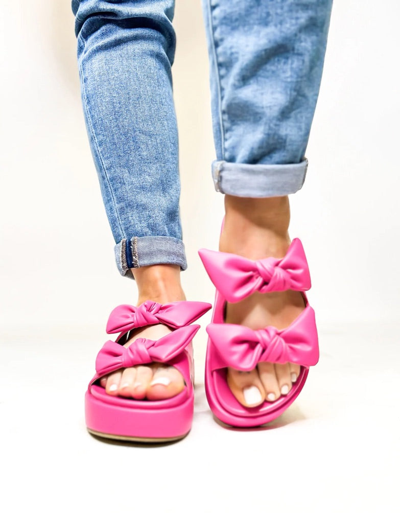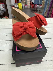 Elevate your summer style with our new Corky's Hot Pink Lil Bit Knotty Sandals! Perfect for any occasion, these casual sandals feature bold bow details along the top straps, adding a touch of charm to your outfit. Don't miss out...