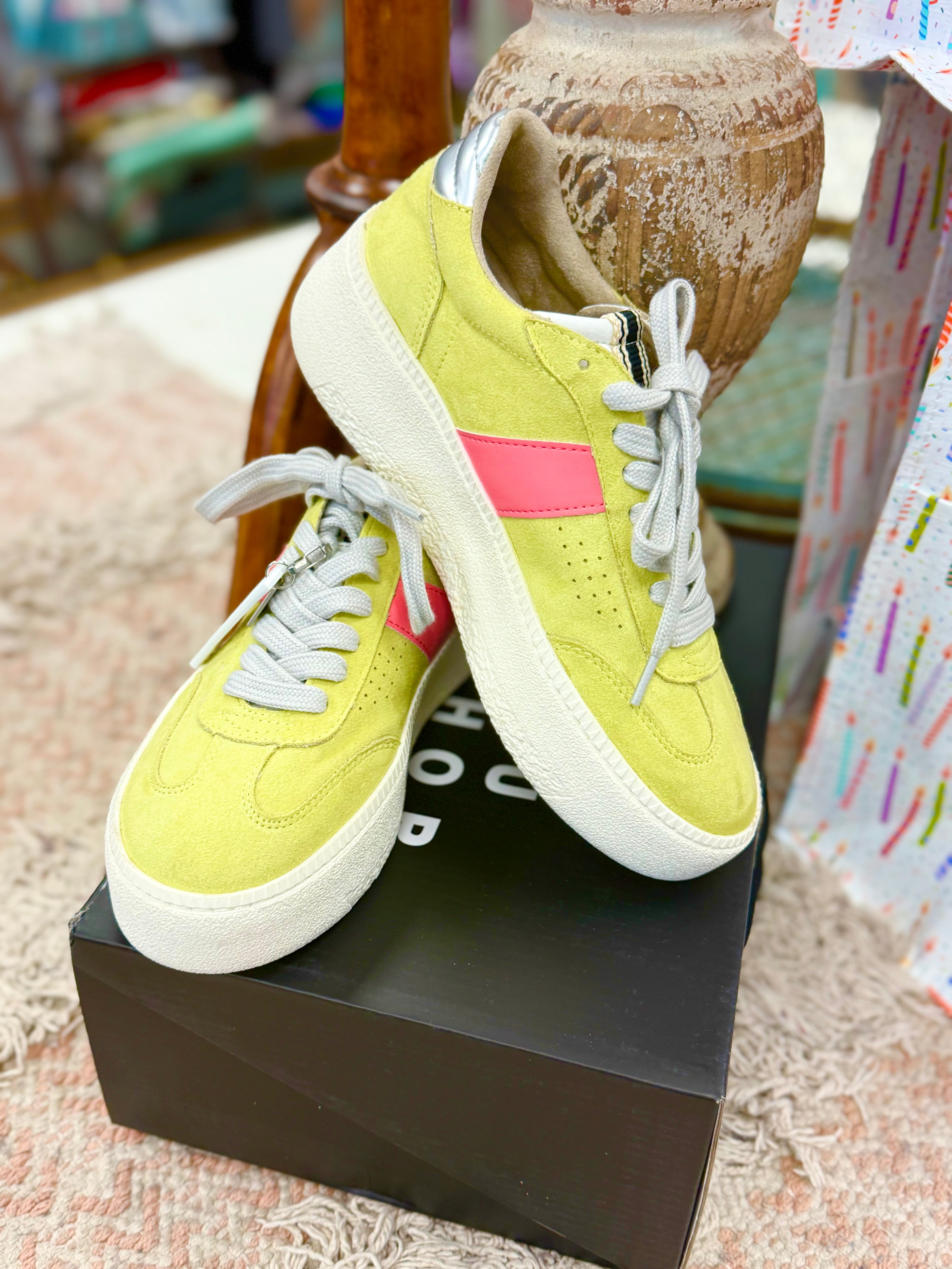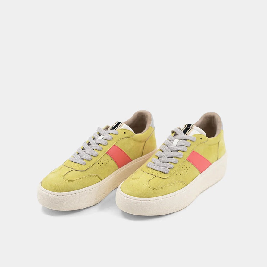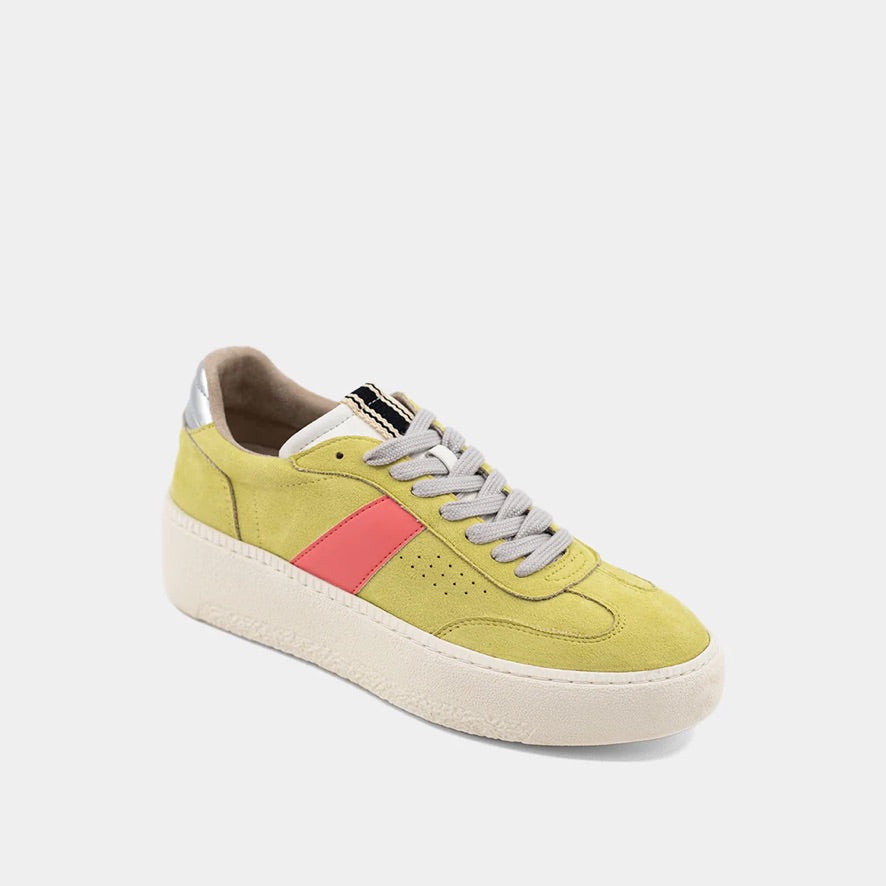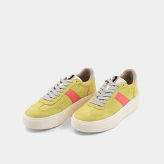 The STACEY in Lime Suede is a statement sneaker that blends vibrant color with modern functionality. Crafted from soft lime suede and accented with a bold coral faux-leather stripe, this sneaker stands out effortlessly. The chunky textured platform sole offers...