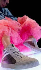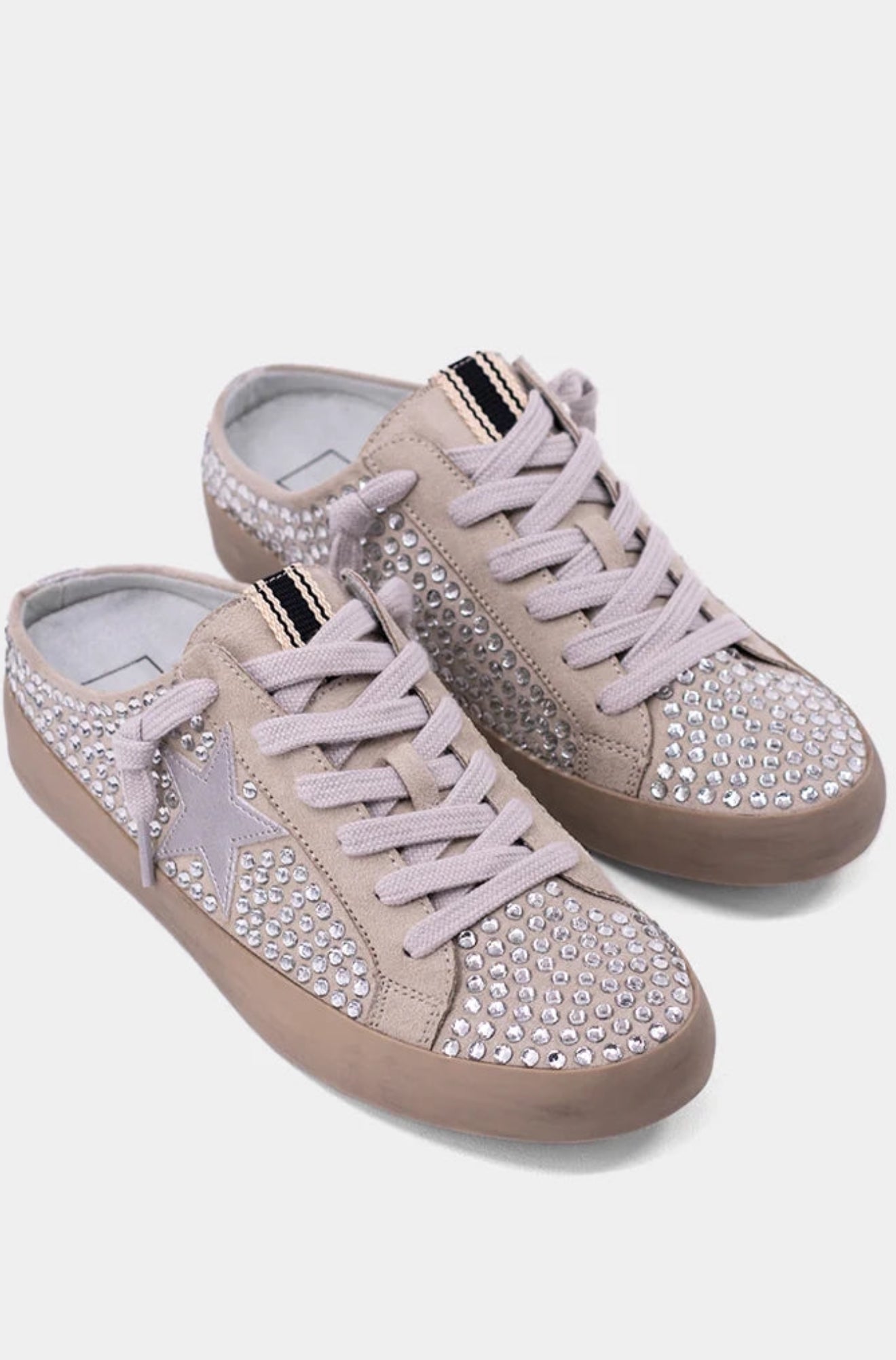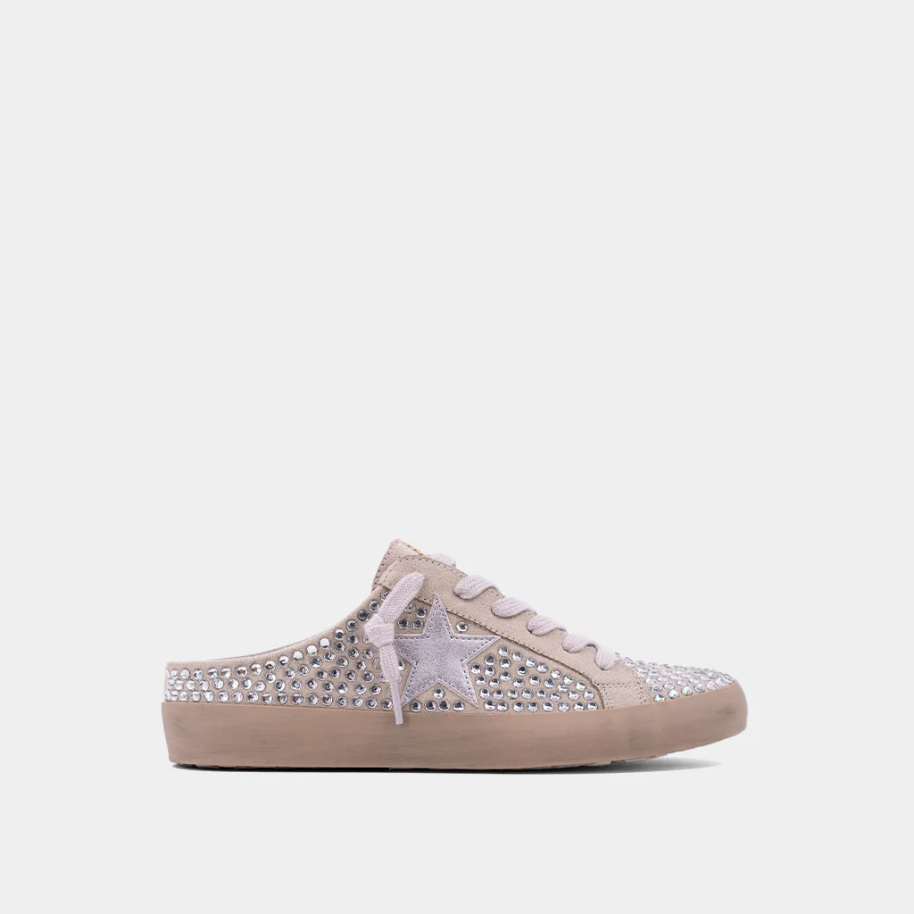 The POLKA in Crystal is a statement-making mule-style sneaker designed to shine. Featuring a soft suede body covered in shimmering rhinestone embellishments, this pair sparkles with every move. A sleek silver star accent adds a touch of elegance, while the...