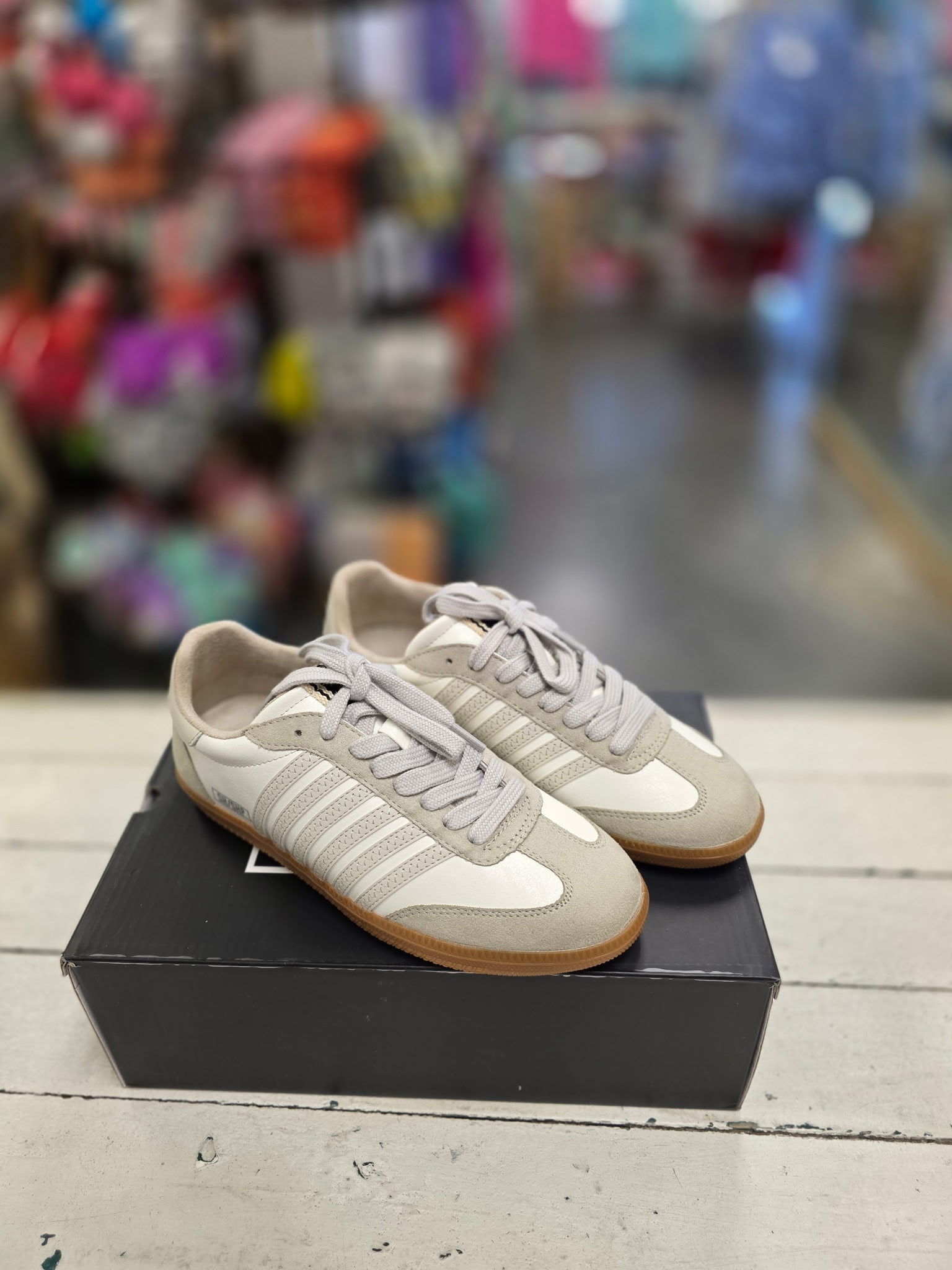 STEVIE steps into the spotlight with a refined mix of crisp white, warm bone, and soft beige. Side-stitched stripes add texture and depth, while suede overlays bring a touch of luxury. Set on a timeless gum sole and finished with...