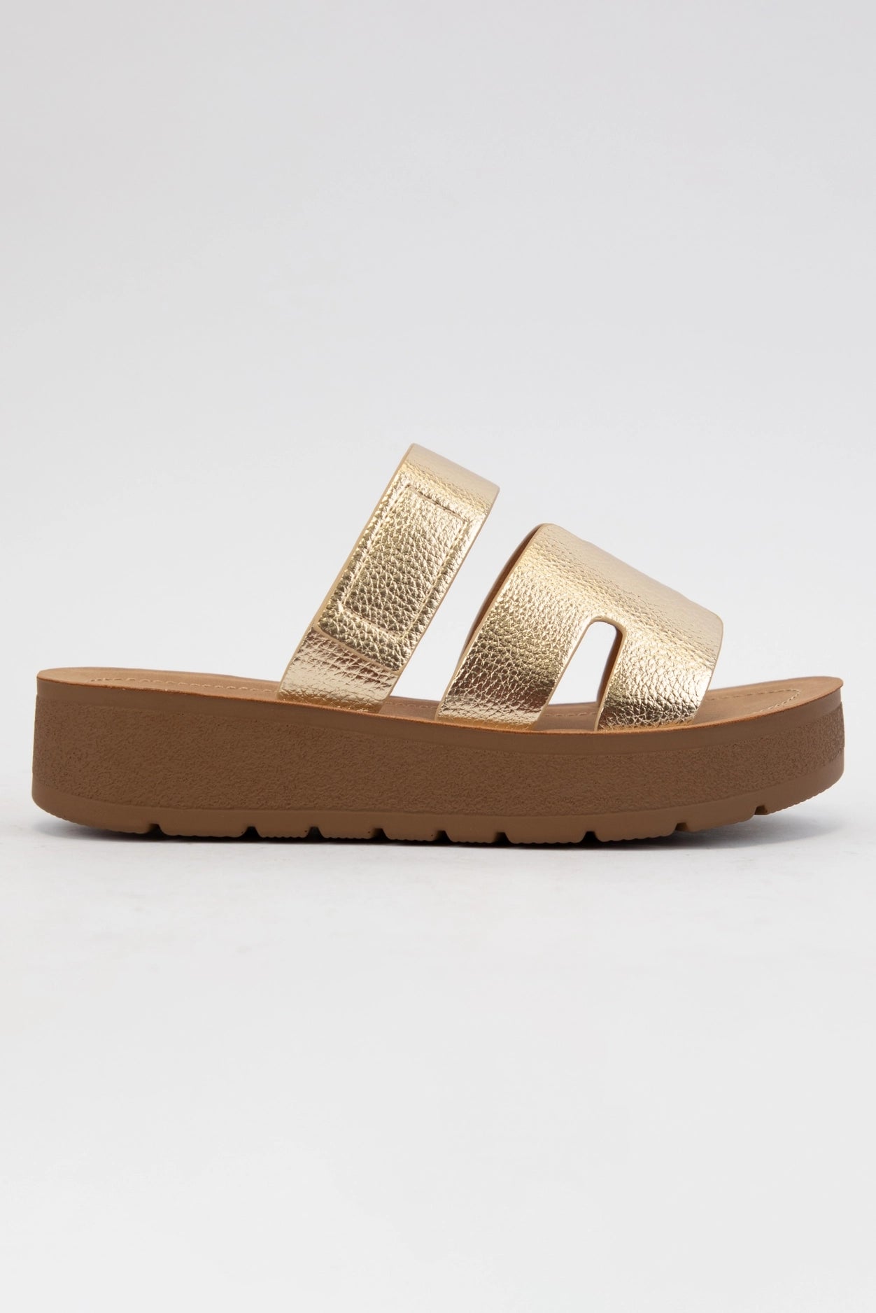 Platform Sandals H-shaped Cutout Design Front Strap Velcro Closure Rear Strap Slip-on Style Lightweight Foam Sole Faux pu/ canvas material Heel heights: 1.75"