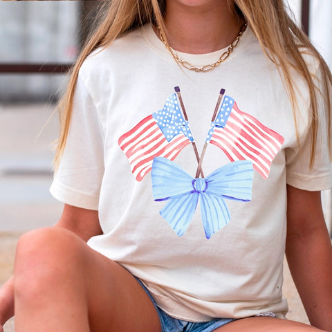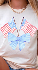Short sleeve mineral washed tee with screenprint white boots with light blue bow