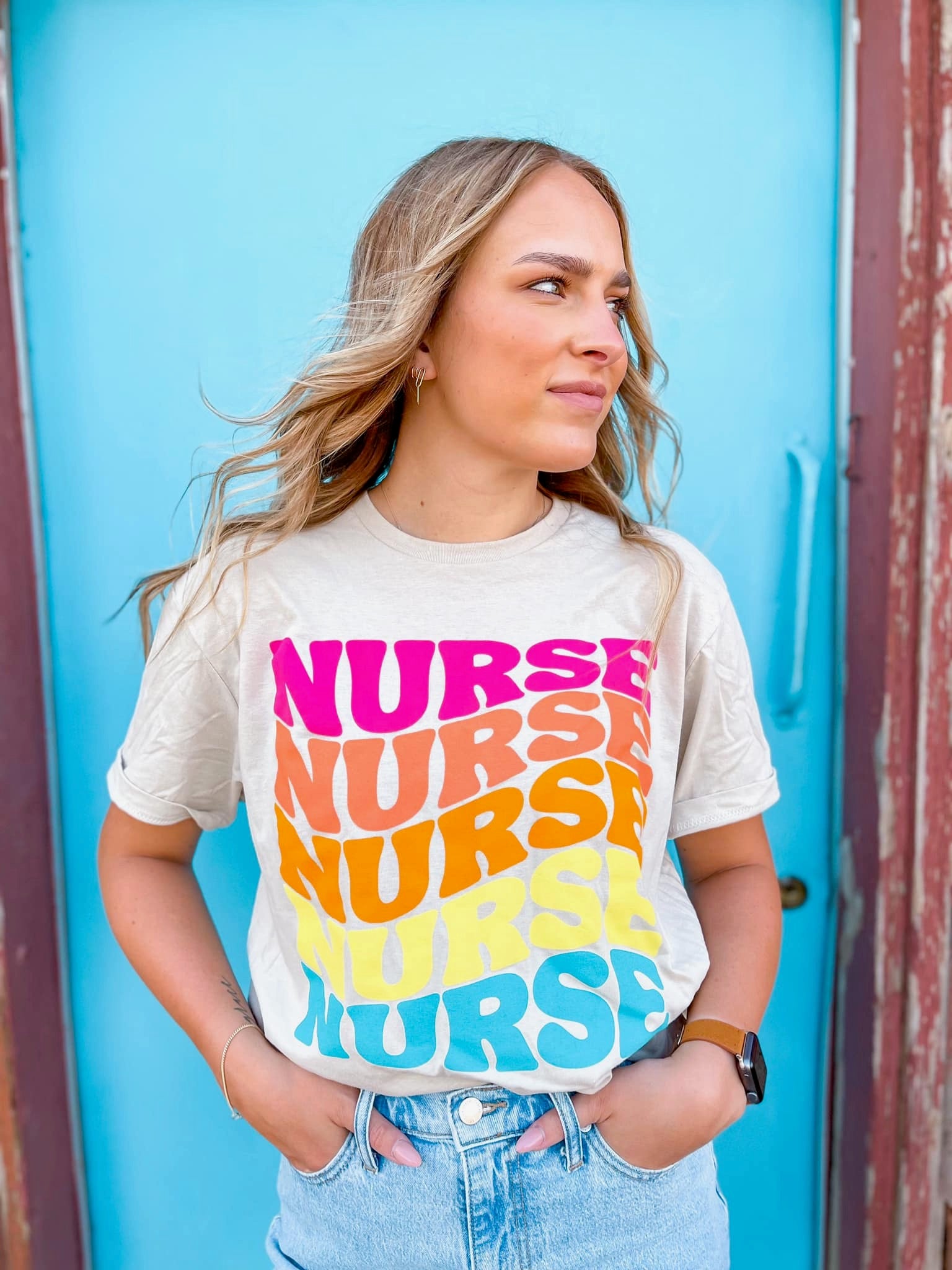 Color: Flo Blue Heather50% Polyester; 50% pre-shrunkRelax Fit TeeMade in United States