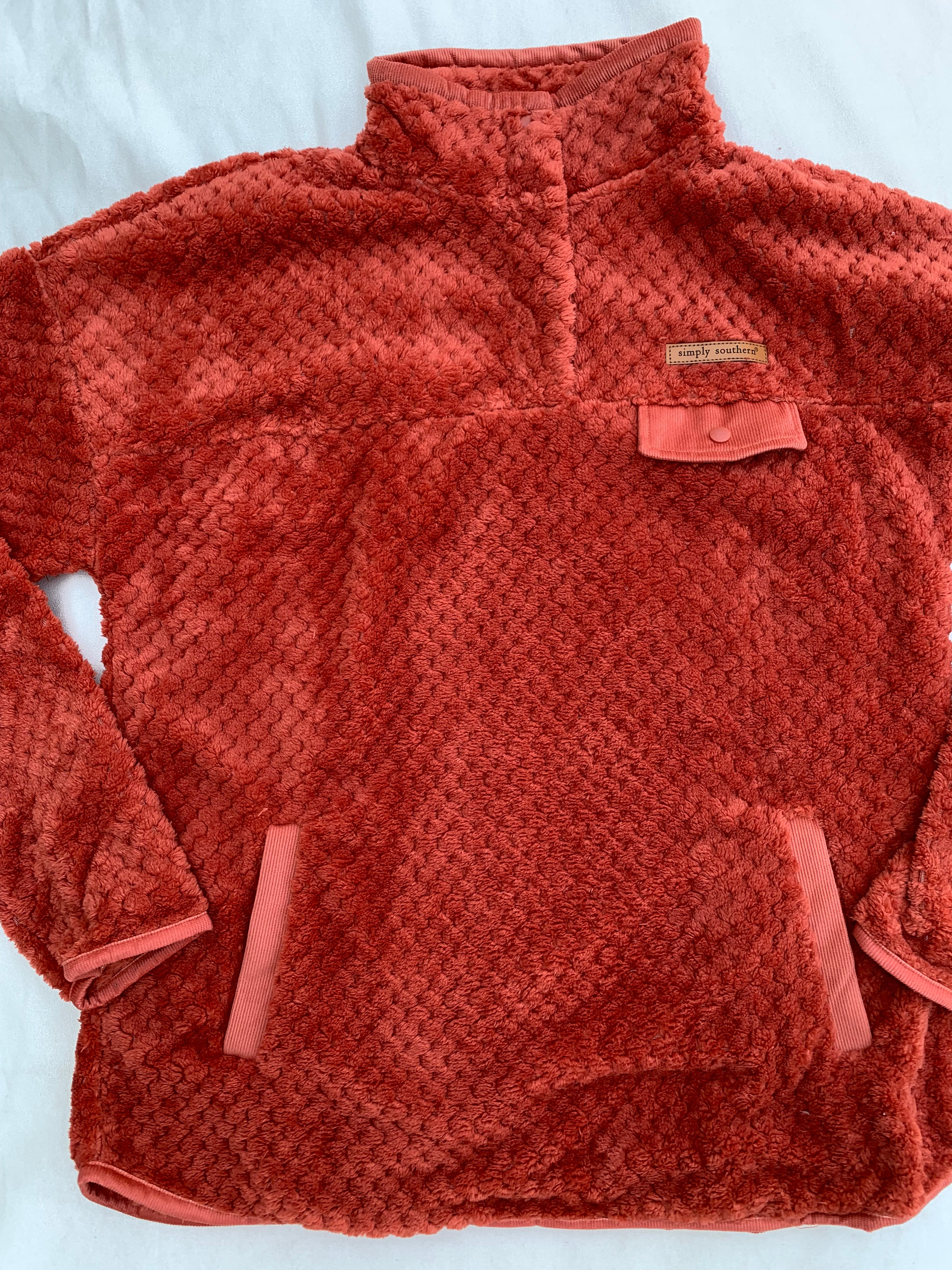 This Simply Southern Simply Soft Pullover Sherpa for Women in Spice is the perfect fall pullover. With adorable contrasting accents, soft fleece body and long sleeves, this quarter snap is made for the colder seasons. Pair with your favorite joggers...