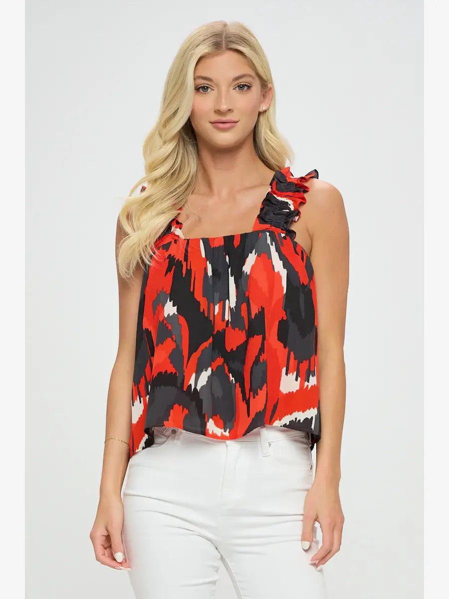 Ruffle shirred elastic strap swing tank or elastic waist pull on shorts