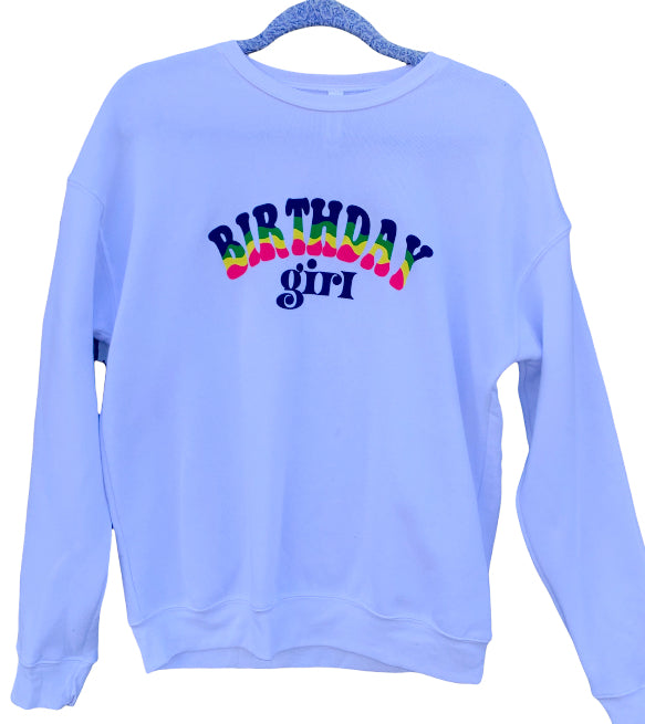 Softest sweatshirt ever! This fun dropped shoulder long sleeve crewneck sweatshirt is birthday approved! It's your day! Live it UP! Thin enough to wear all year long. Roomy cut for that oversized look. Color: WhiteFabric: 52% Cotton 48%PolyesterBrand: Bella CanvasSizing: Medium...