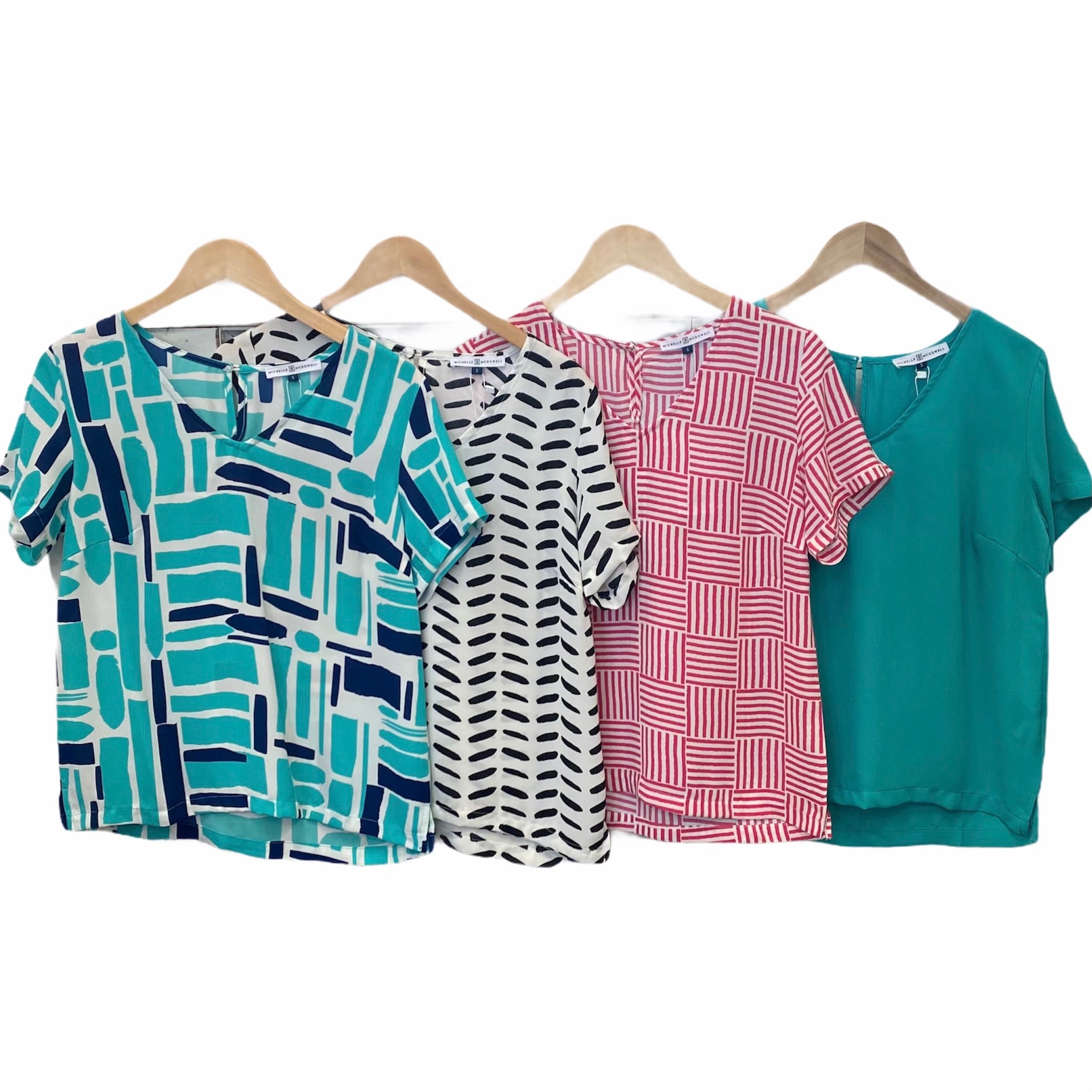 Colors/ Patterns: All Squared Away (Navy and Green), Green, Line By Line Pink, Sunset Cruise (Black and White)