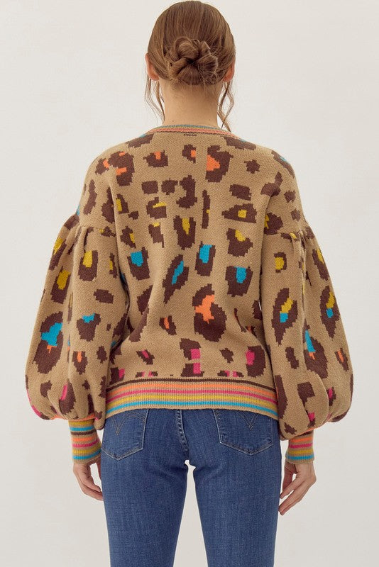 Unleash your wild side with the On The Prowl Sweater! This fierce pullover features a trendy leopard print, paired with a U-neck and drop shoulders for a relaxed fit. The long balloon sleeves and ribbing add a touch of playful...