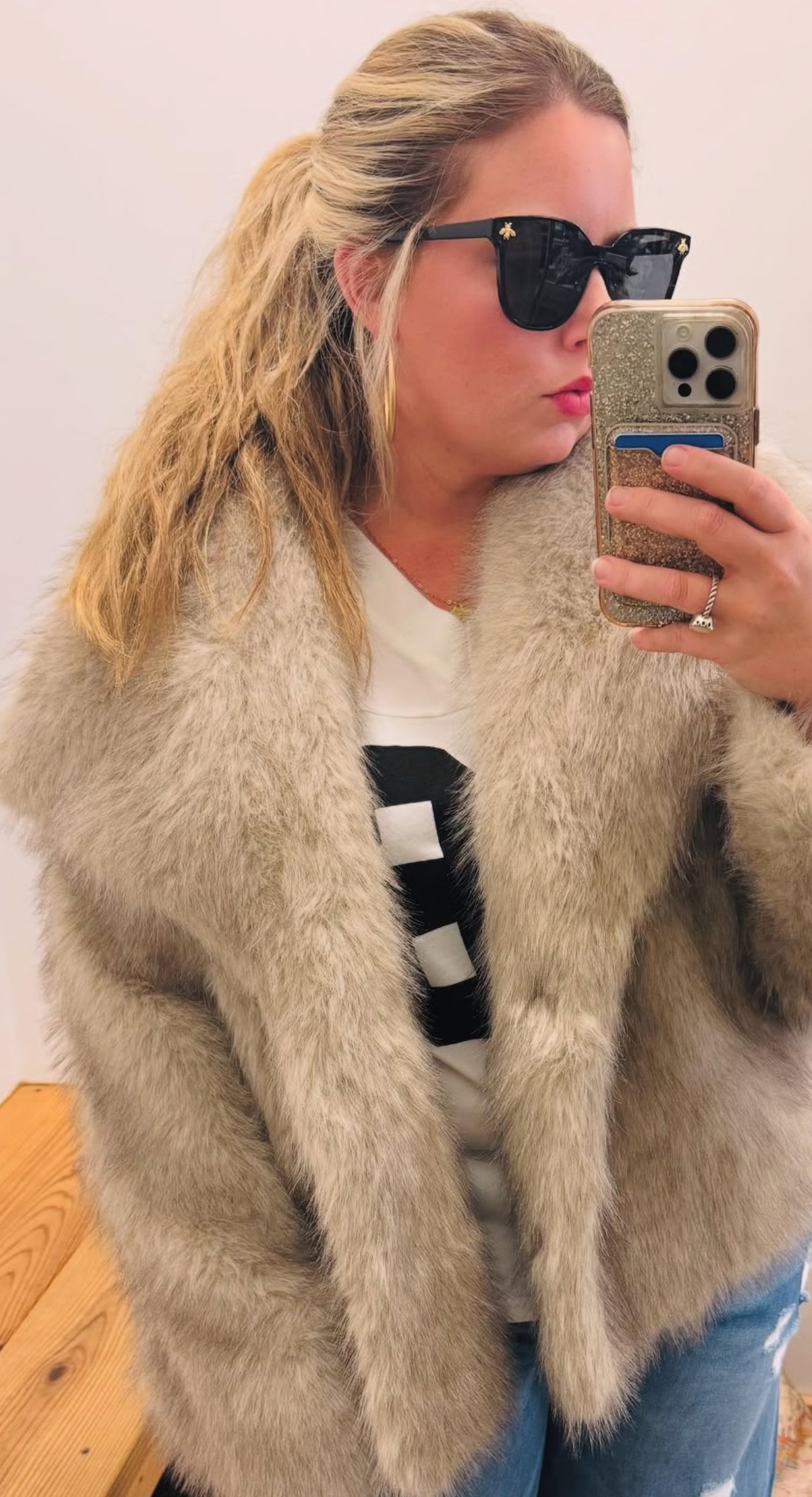 Fun and Over the Top - this faux fur trench coat is perfect to wear with jeans or to pair with your favorite floral dress.
