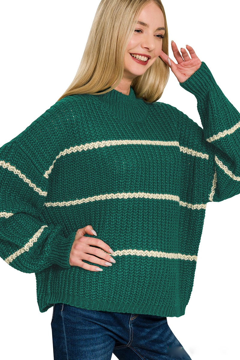 OVERSIZE STRIPED SWEATER - Long sleeves and chunky knit