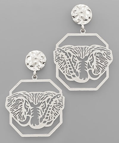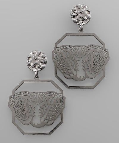 Silver plated stud earrings with crimson enamel featuring the Alabama logo. Logo measures around 0.5” in height.