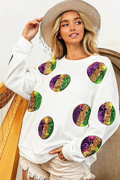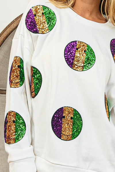 MARDI GRAS SMILEY SEQUIN PATCHES SWEATSHIRT
