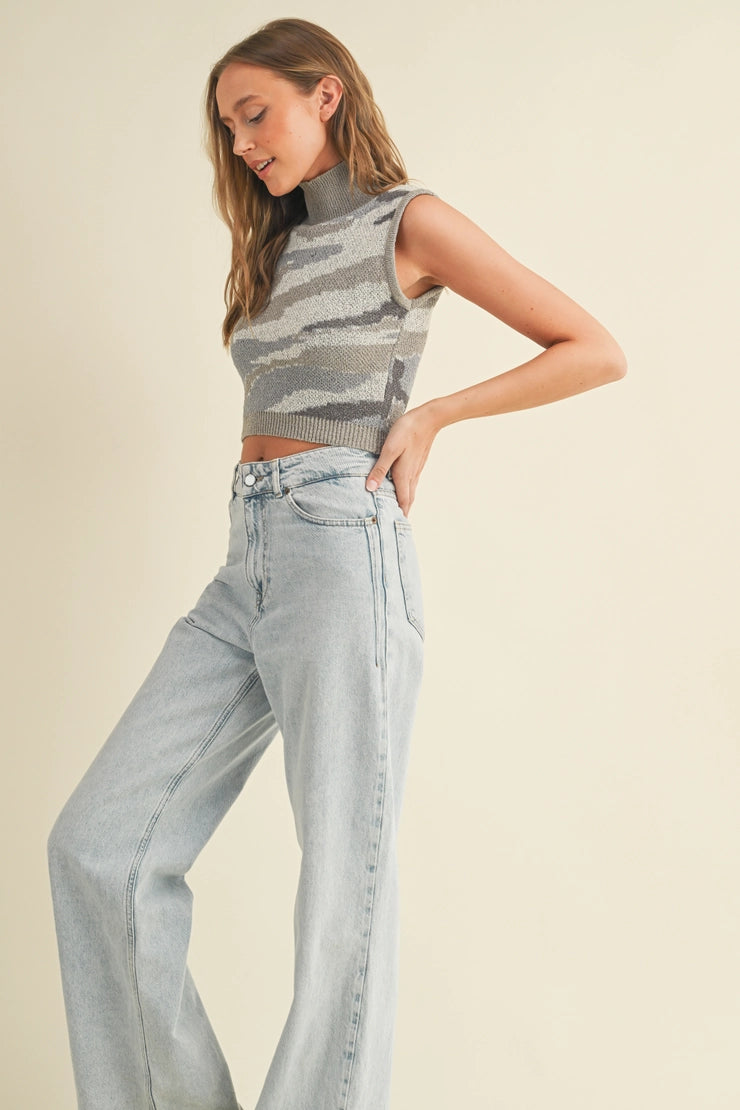 Muted tons sweater turtleneck sweater in a cropped cut. Perfect to pair with jeans or shorts. Fun look that will elevate your style.