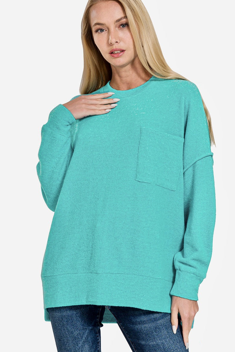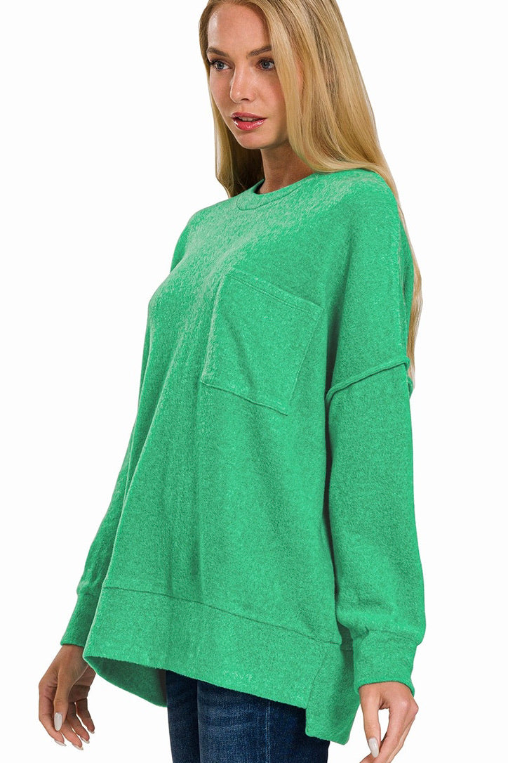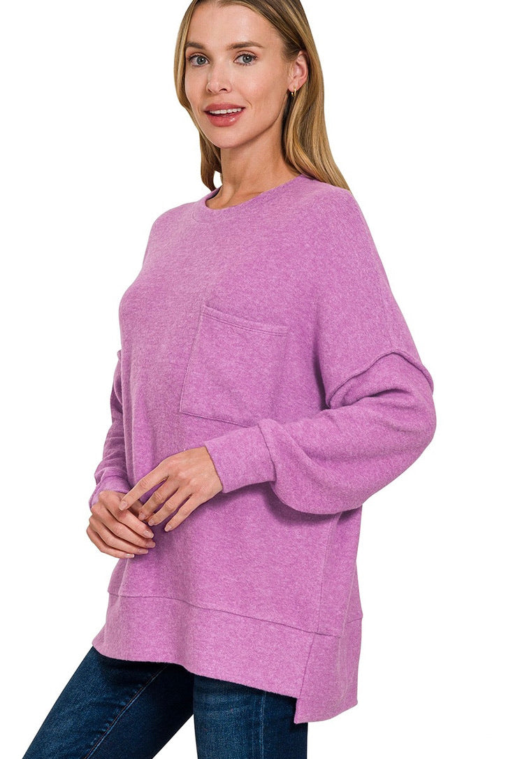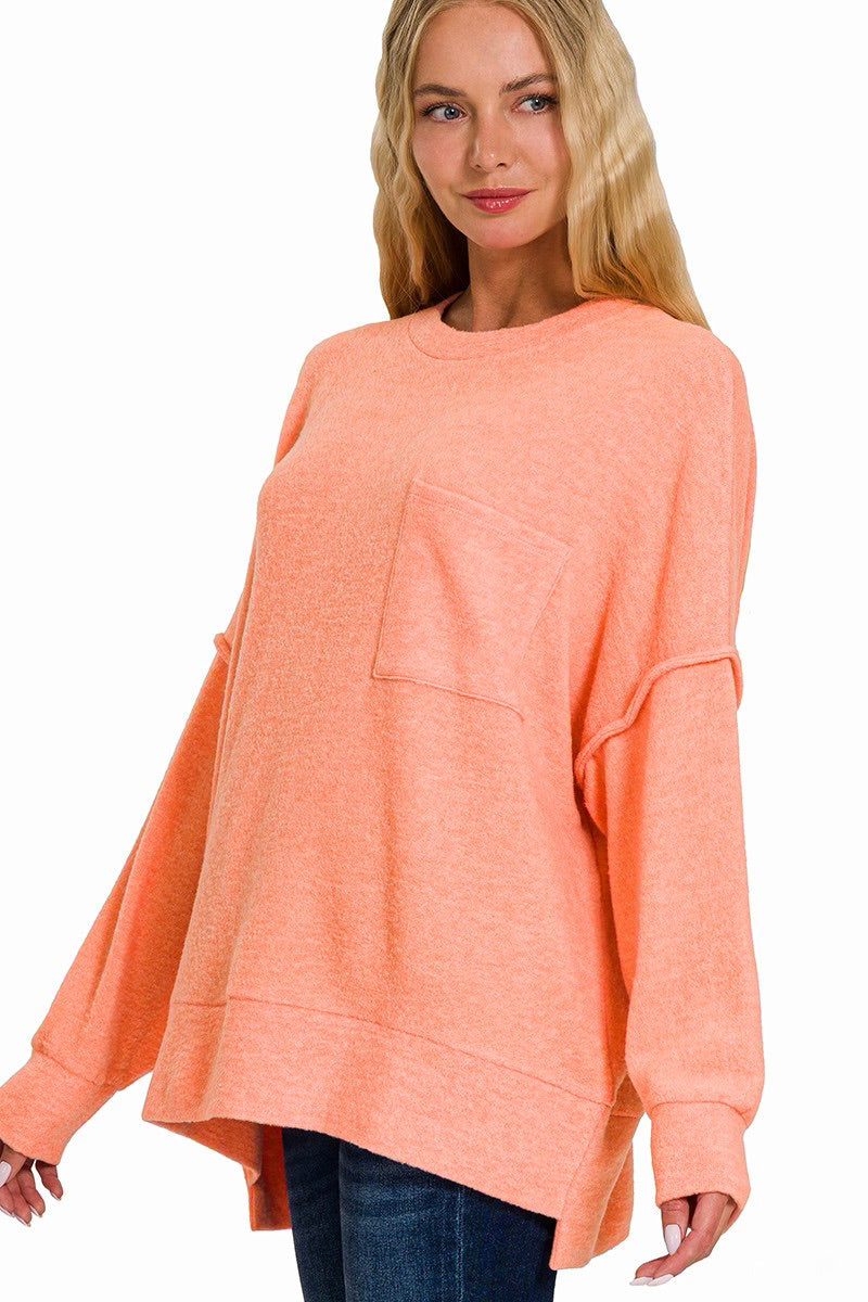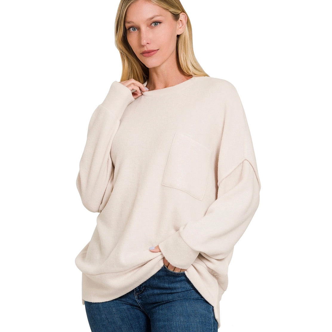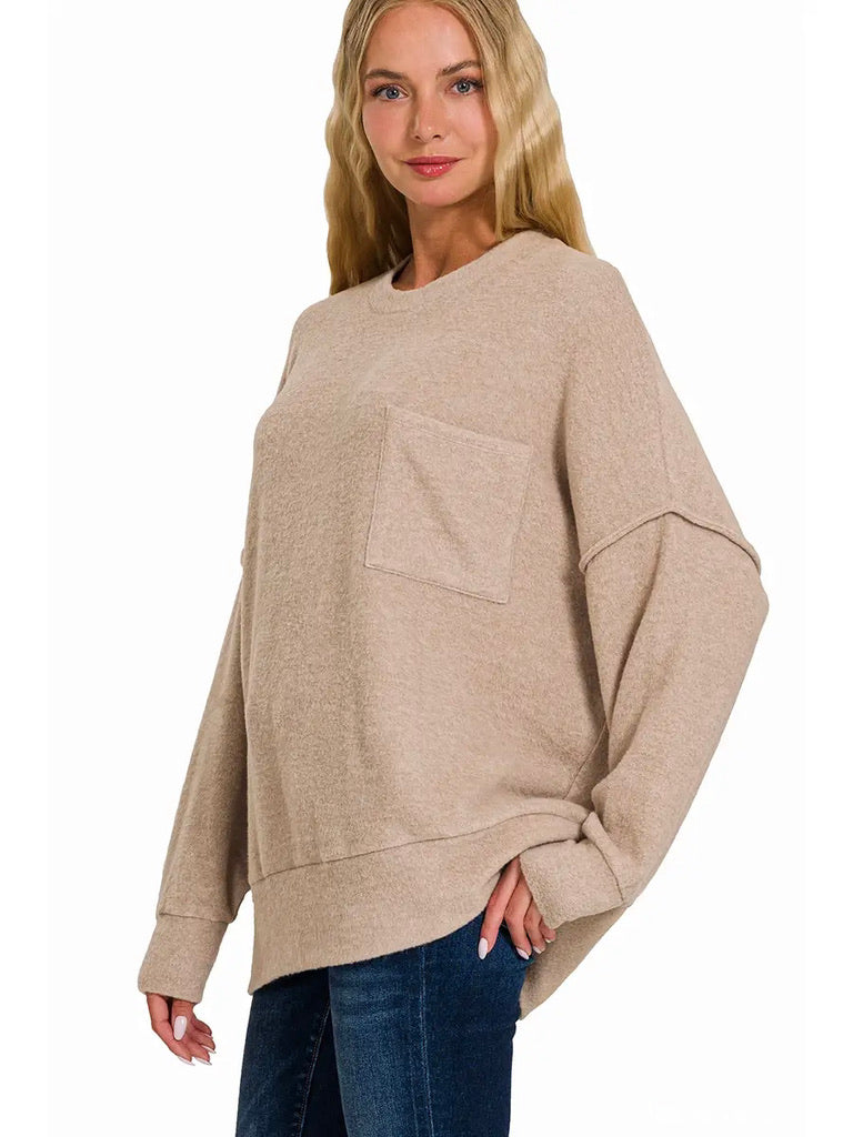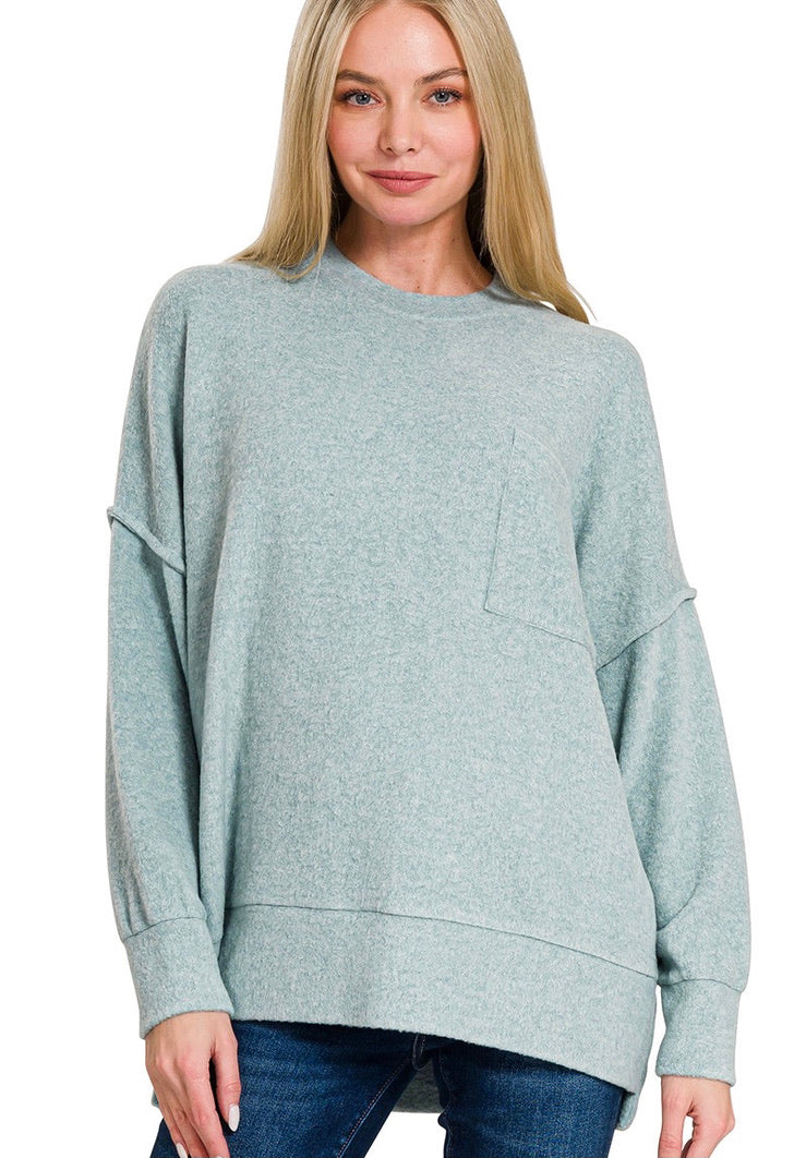 This cozy brushed melange top, available in multiple options, is perfect for days like this. With a drop shoulder design and oversized fit, it offers both style and comfort. Stay warm and stylish all at once with this must-have essential.