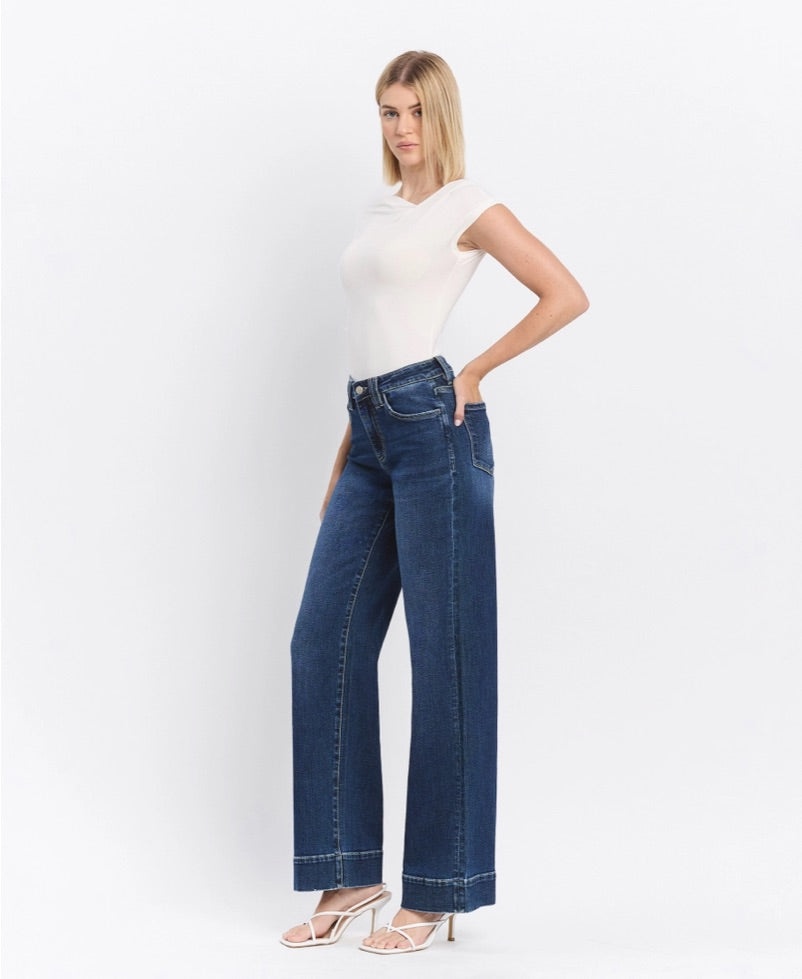 COMFORT STRETCH DENIM, HIGH RISE WAIST, FULL LENGTH, TROUSER WIDE JEANS