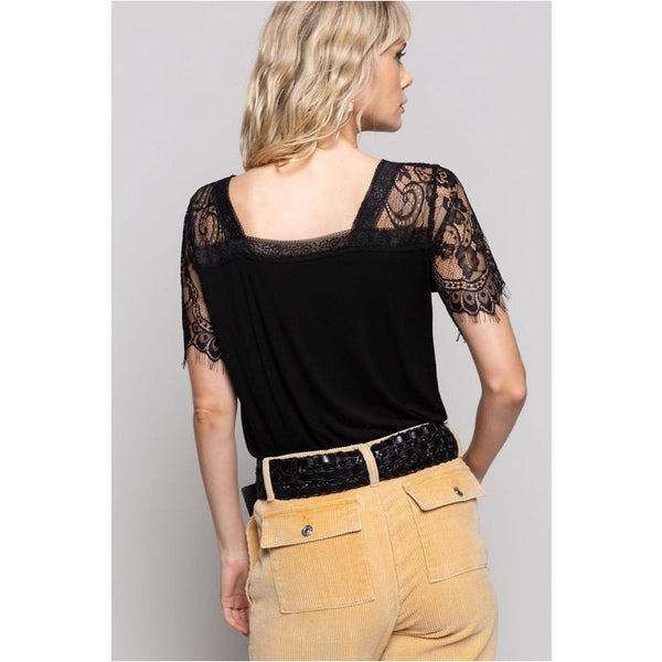 Our forever favorite "Sweetheart Confession" will be your forever favorite too as it can be worn beautifully for both day and night with lace fabrication and trim detail on body. Designed in a relaxed fit with raglan short lace scallop fabrication sleeve, low V neckline with lace trim detail, and finished with clean hem