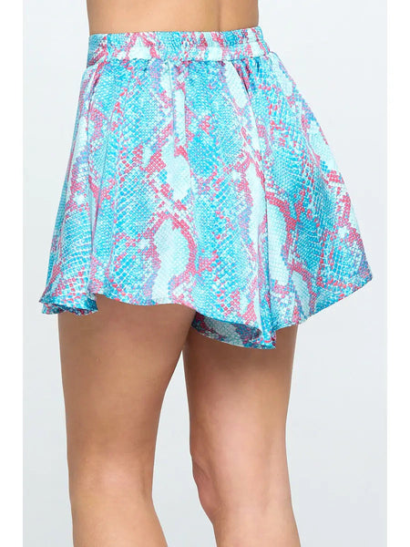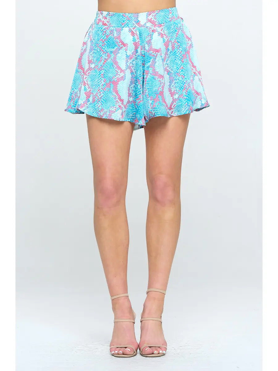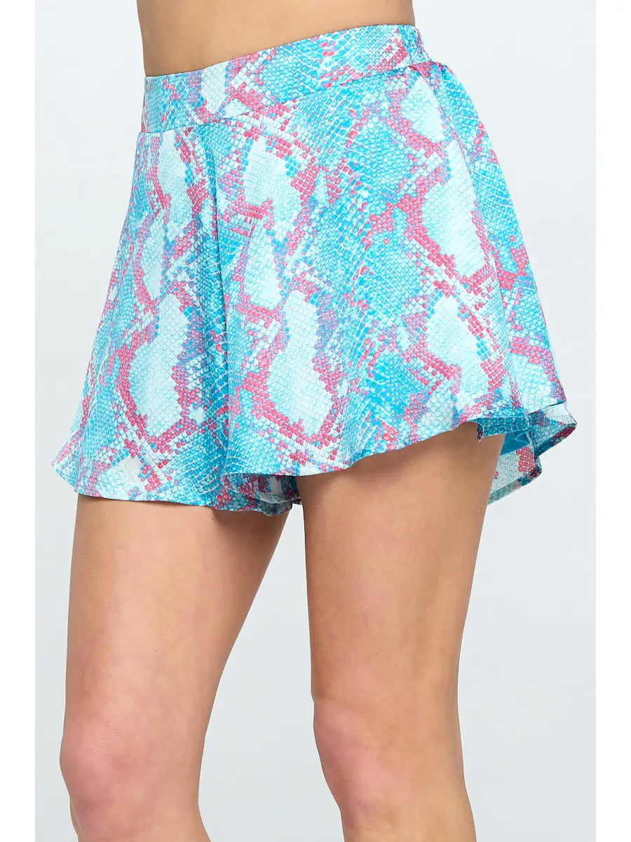 Swing shorts with elastic waist and colorful reptile print