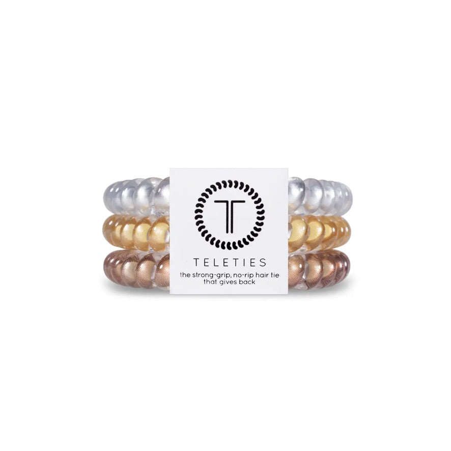 Hold your hair and enhance your style with TELETIES. The strong grip, no rip hair ties that double as a bracelet. Strong, pretty and stylish, TELETIES are designed to withstand everyday demands while taking your look to the next level.